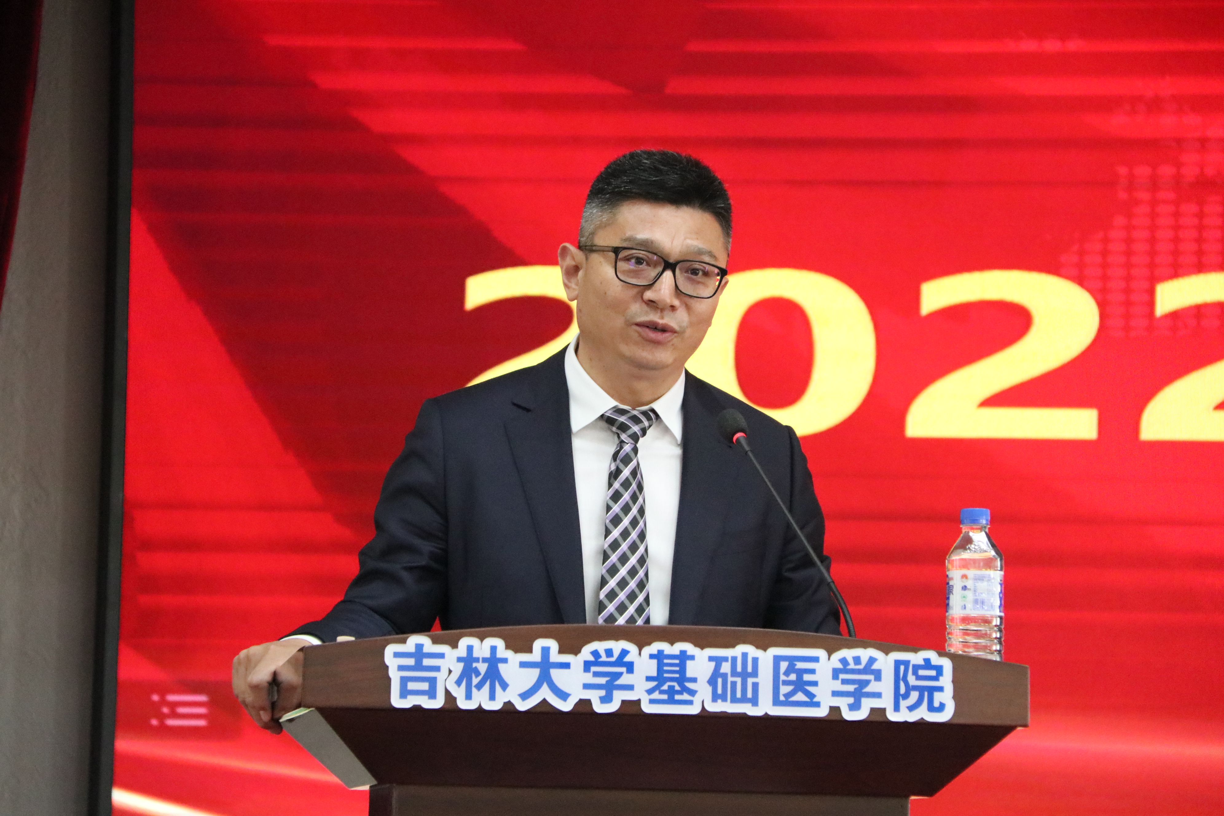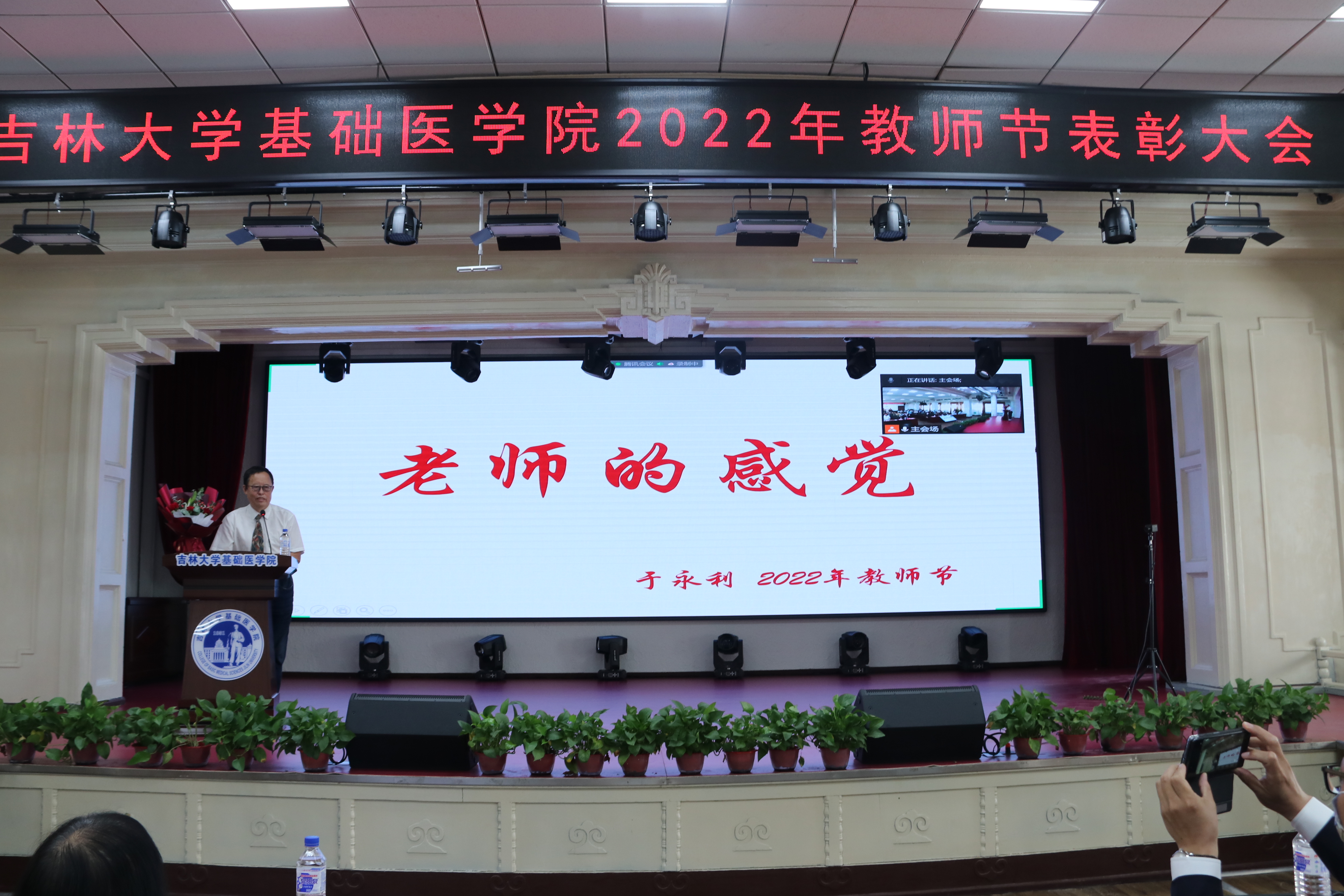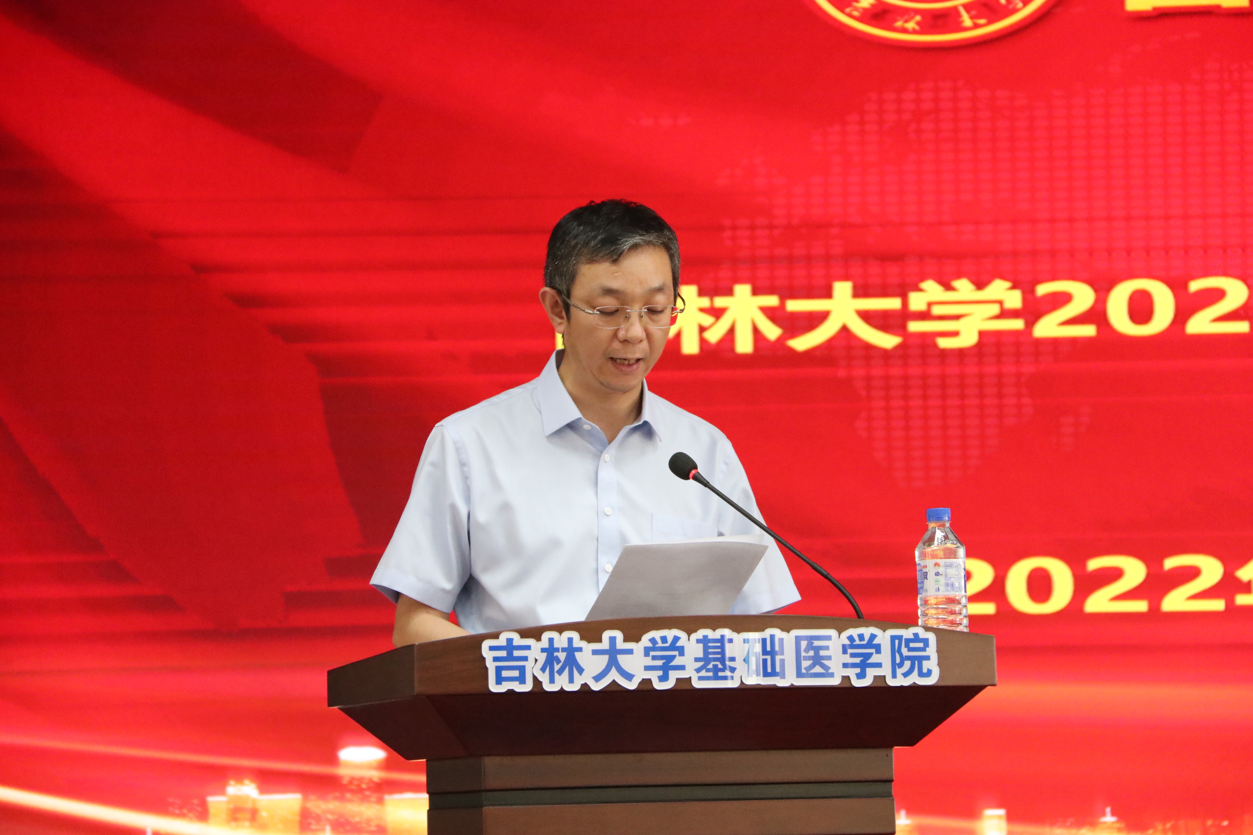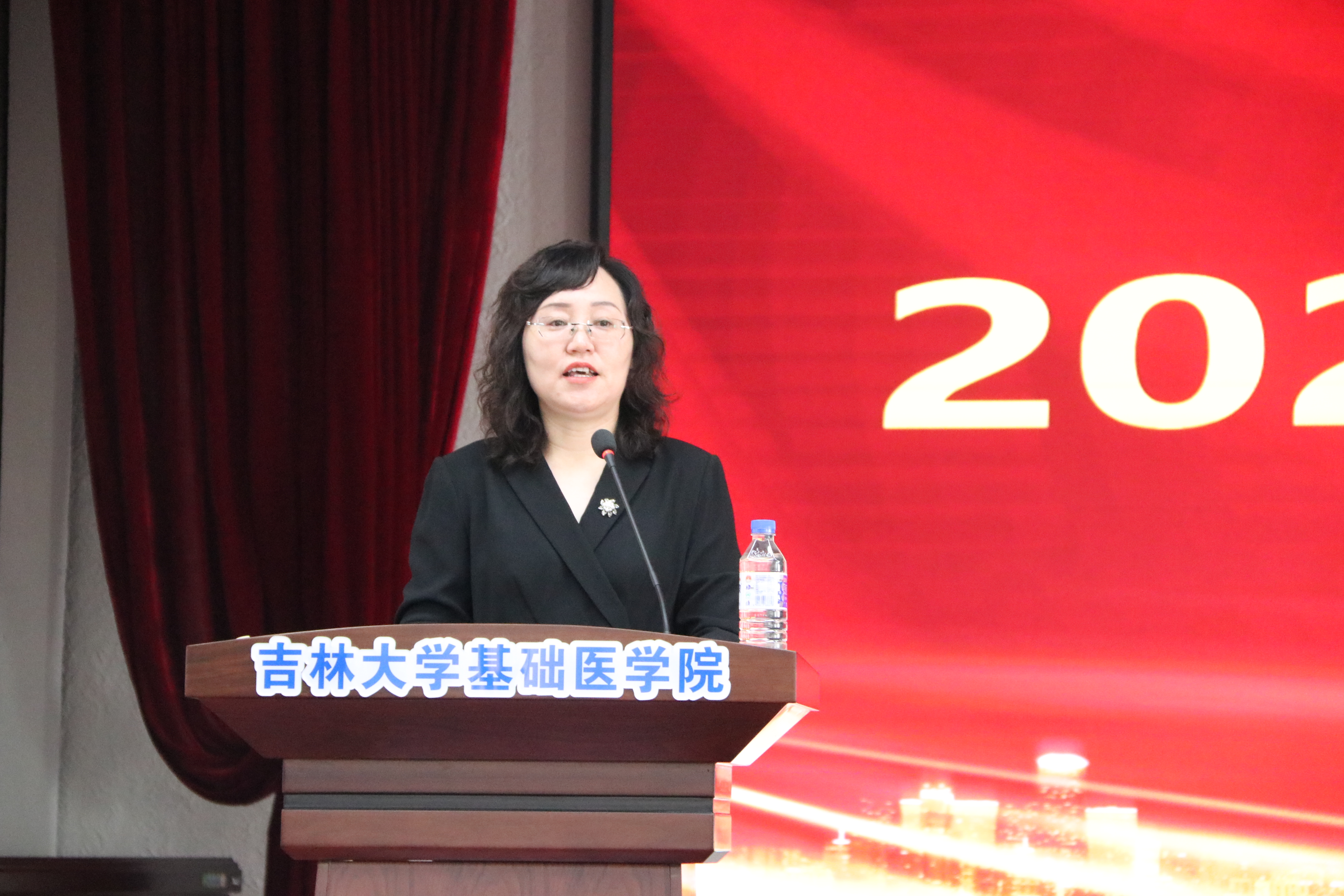 庆祝表彰大会在雄壮的国歌声中开始。首先,大会播放了由学院党委制作的纪录片《先贤之光》,以鲍鉴清、杨敷海、王凤振、杨贵贞、徐景达、王凡六位基础先贤为代表,向为我国医学教育事业做出突出贡献的学院前辈们致敬。号召学院全体师生,继承并发扬基础精神,为新时代吉林大学医学教育创新发展贡献力量与担当。