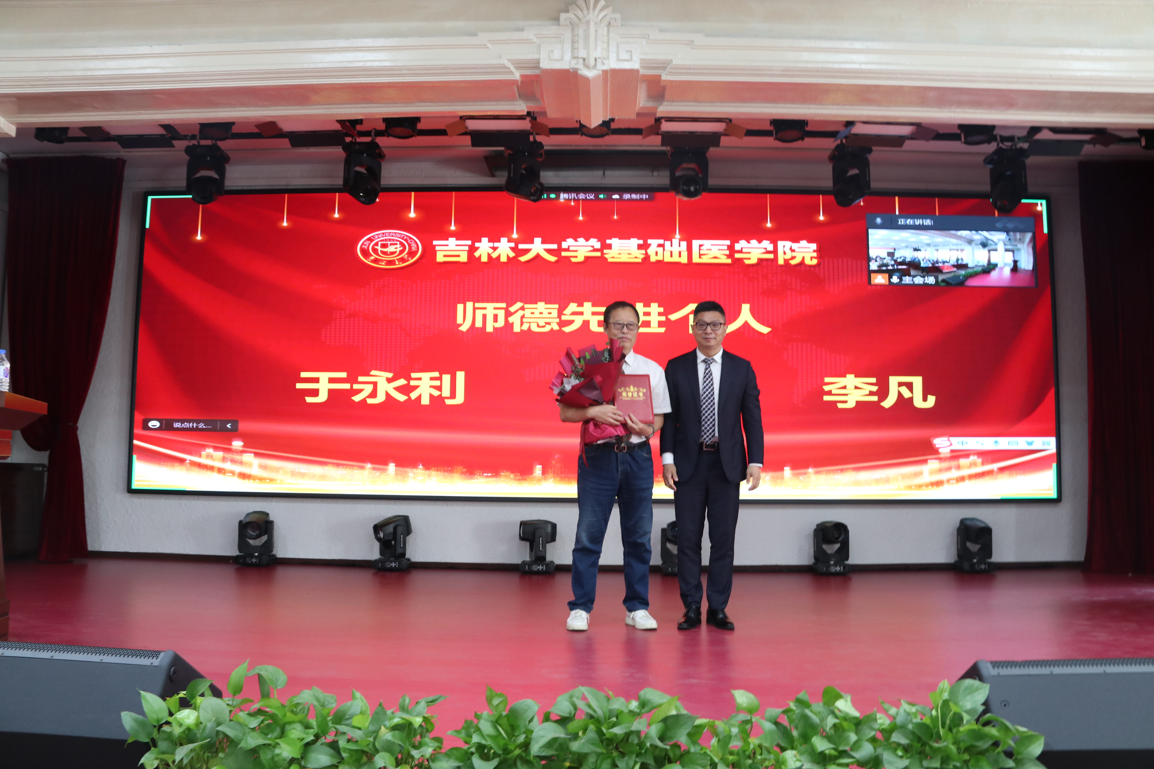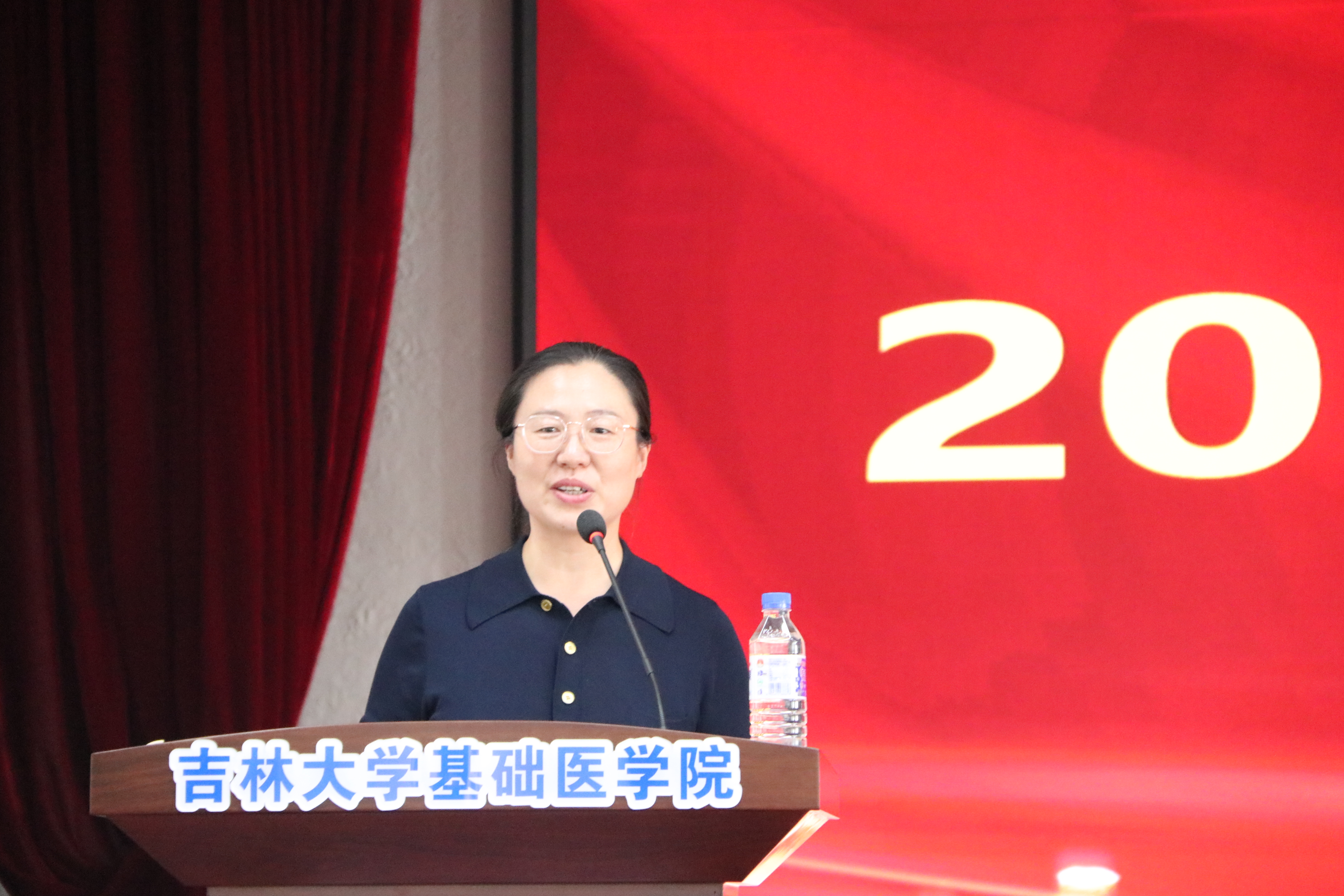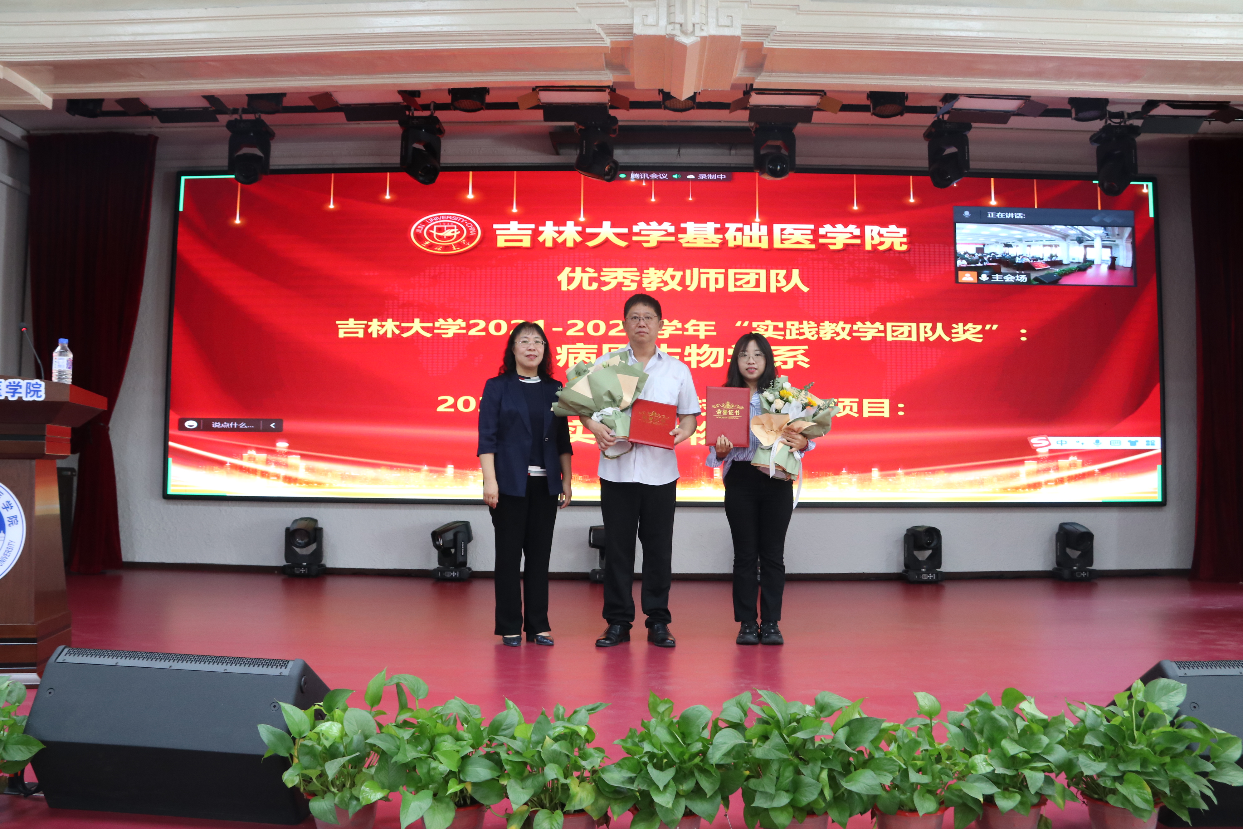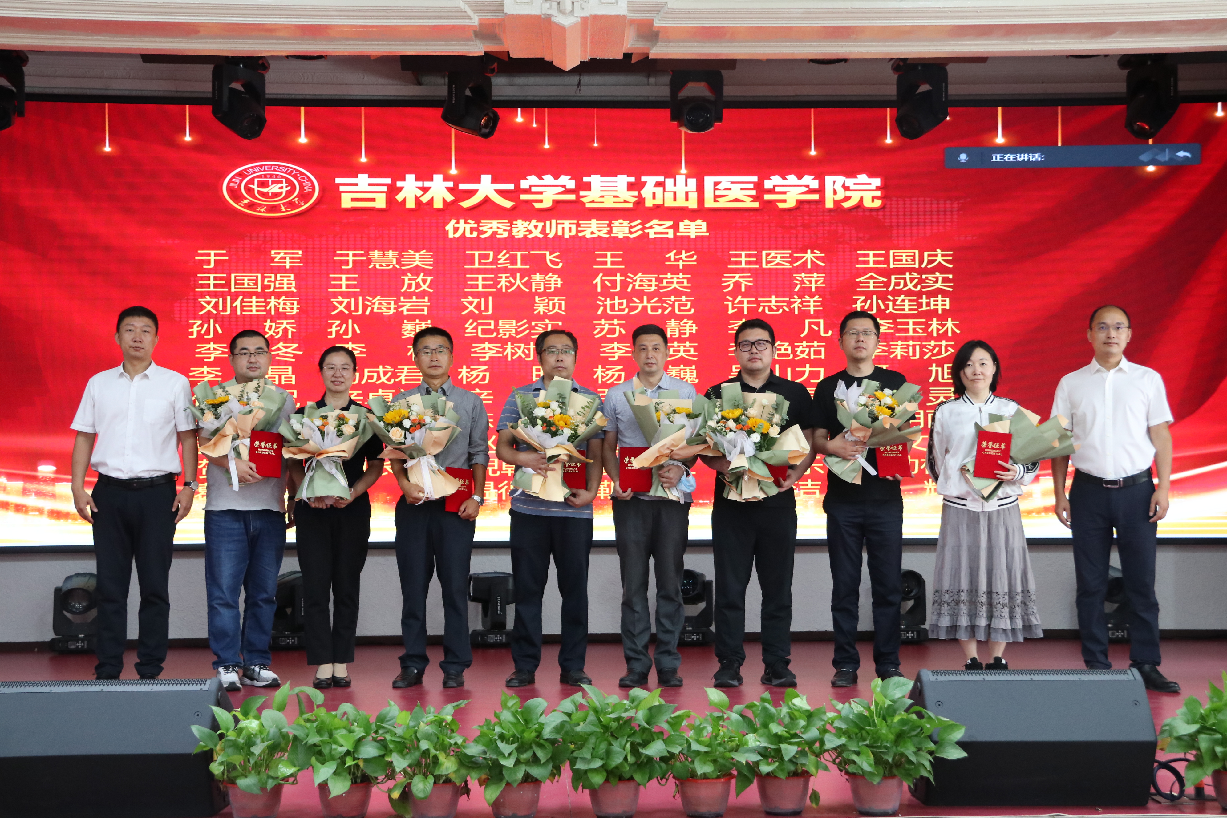 庆祝表彰大会在雄壮的国歌声中开始。首先,大会播放了由学院党委制作的纪录片《先贤之光》,以鲍鉴清、杨敷海、王凤振、杨贵贞、徐景达、王凡六位基础先贤为代表,向为我国医学教育事业做出突出贡献的学院前辈们致敬。号召学院全体师生,继承并发扬基础精神,为新时代吉林大学医学教育创新发展贡献力量与担当。