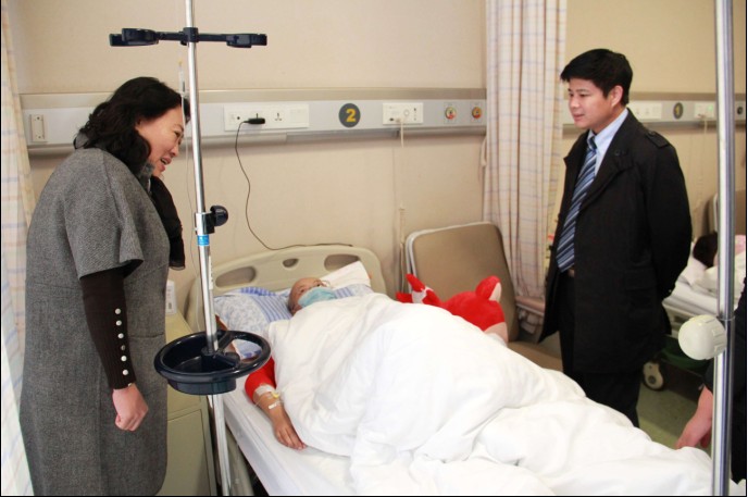 10月26日上午,吉林大学校长助理、白求恩医学部常务副学部长、白求恩医学院院长李凡、白求恩医学院党委书记屈英和前往吉林大学白求恩第一医院探望仍在治疗中的潘菡,李凡将全校师生募捐筹得的96151元善款亲手送交到潘菡父母手中。李凡亲切询问了潘菡目前的身体状况及生活情况,鼓励她要勇敢、坚强地面对困难和疾病,并祝愿她早日恢复健康。潘菡及家长感谢学院领导、老师和同学们对潘菡生病以来的关心和帮助,潘菡表示一定乐观面对,积极治疗,争取早日恢复健康,重返校园。