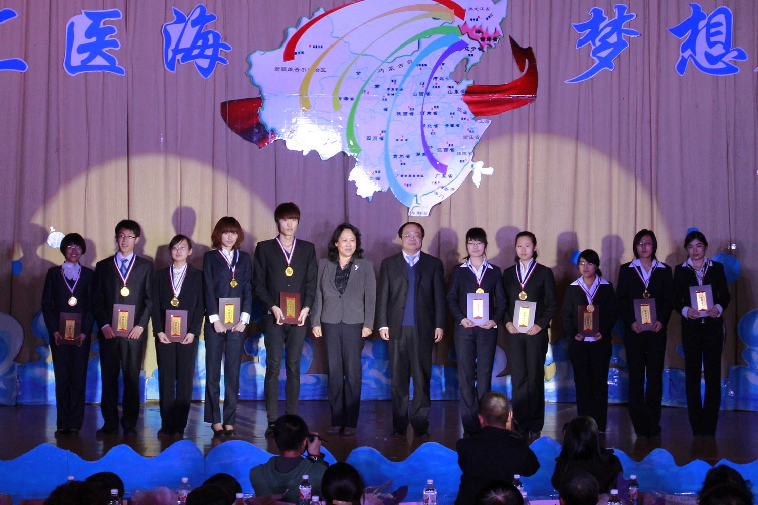 晚会进行中还举行了2011年白求恩优秀班级、白求恩十佳大学生颁奖仪式。李凡、屈英和、高继成分别为获奖班级和学生颁奖并合影留念。随后,李凡发表了即兴讲话,她教导学生要谨记医生的责任不负医学之神圣,做好小事无愧白医之精诚,同时希望新生秉承白求恩精神,做一名合格、优秀的医学人才。