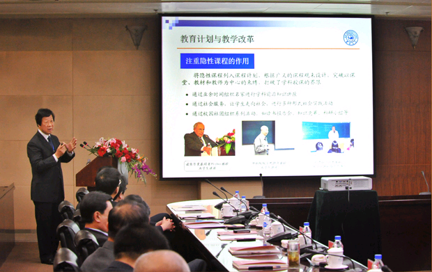 白求恩医学院院长李玉林代表吉林大学作认证工作汇报。他围绕培养具有现代意识、国际视野、创新能力的白求恩式的卓越医学人才的目标,重点汇报了吉大在教育计划与教学改革、学生成绩评定与教育评价、学生与教师、教育资源与开放办学及科学研究与教学等方面开展的工作。