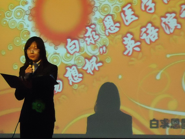 10月22日18时,白求恩医学院“畅想杯”英语演讲比赛决赛在基础楼二楼多功能学术报告厅举行。公共外语教育学院李朝教授、张晓平副教授、国际友人Fabian、白求恩医学院病理生理学系李洪岩副教授、生物化学教研室张纪周副教授担任了本次比赛的评委,学院党委副书记兼副院长苑锐出席比赛。
