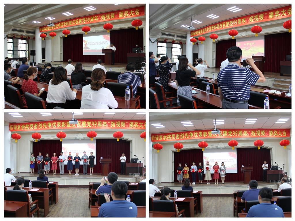 会上,学院领导为获得先进党支部代表颁发荣誉证书,为李扬等8名优秀共产党员代表、何旭等6名优秀党务工作者代表颁发荣誉证书;为获奖的教工第三党支部等6个“短视频”作品代表颁发获奖证书。刘玲作为优秀党支部书记代表进行了发言。